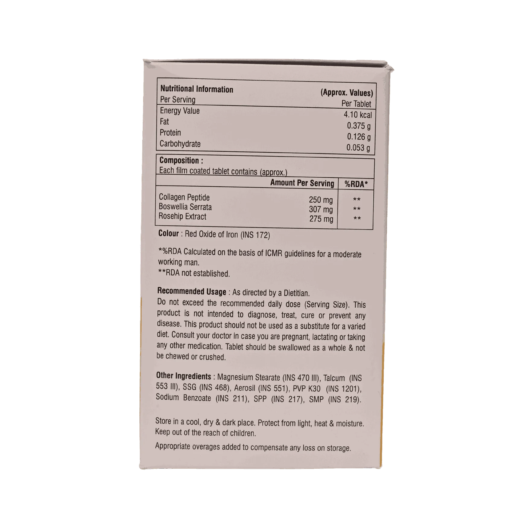 This is proven food supplement for the stimulation of joint repair, Collagen, Rose-hip extract with Boswellia Serralia promotes healthy joints and cartilage growth, beneficial for Arthritis.